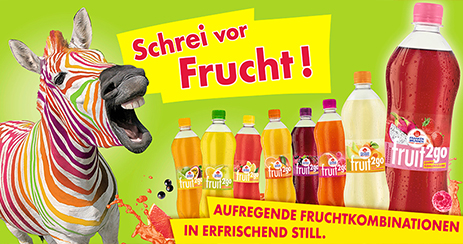 Es wird bunt. Überregionale Einführung von fruit2go, dem trendorientierten Fruchtmixgetränk in regelmäßig wechselnden aufregenden Sorten.